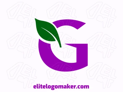Logotipo de letra inicial atraente e sutil, com a letra 'G' em roxo, combinada com uma folha verde, criando um design fresco e equilibrado.