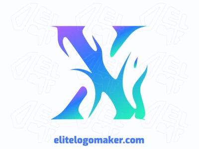 Logotipo luxuoso e original com a letra 'X' em um design abstrato com estilo degradê azul e verde.